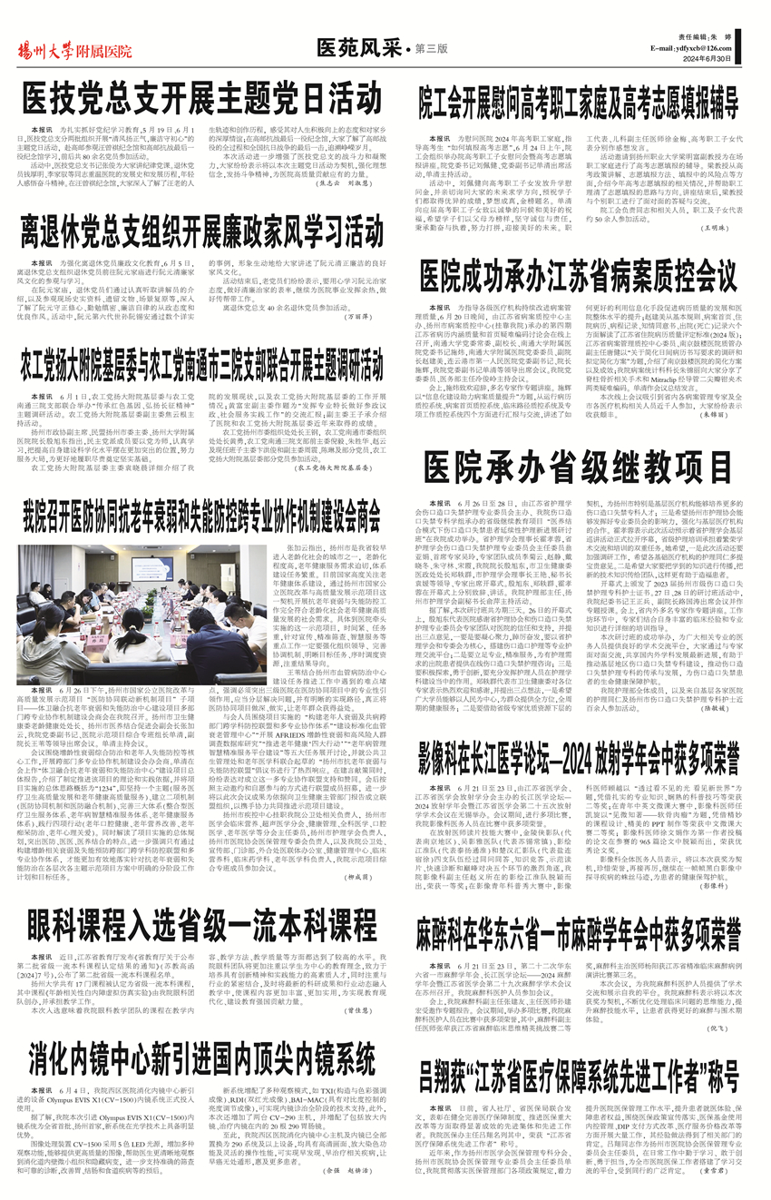 《扬州大学附属医院》第77期(2024年6月30日第3版)
