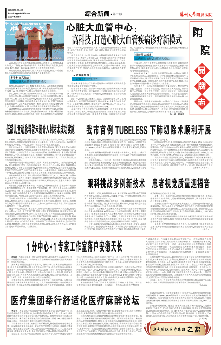 《扬州大学附属医院》第55期(2022年8月15日第2版)
