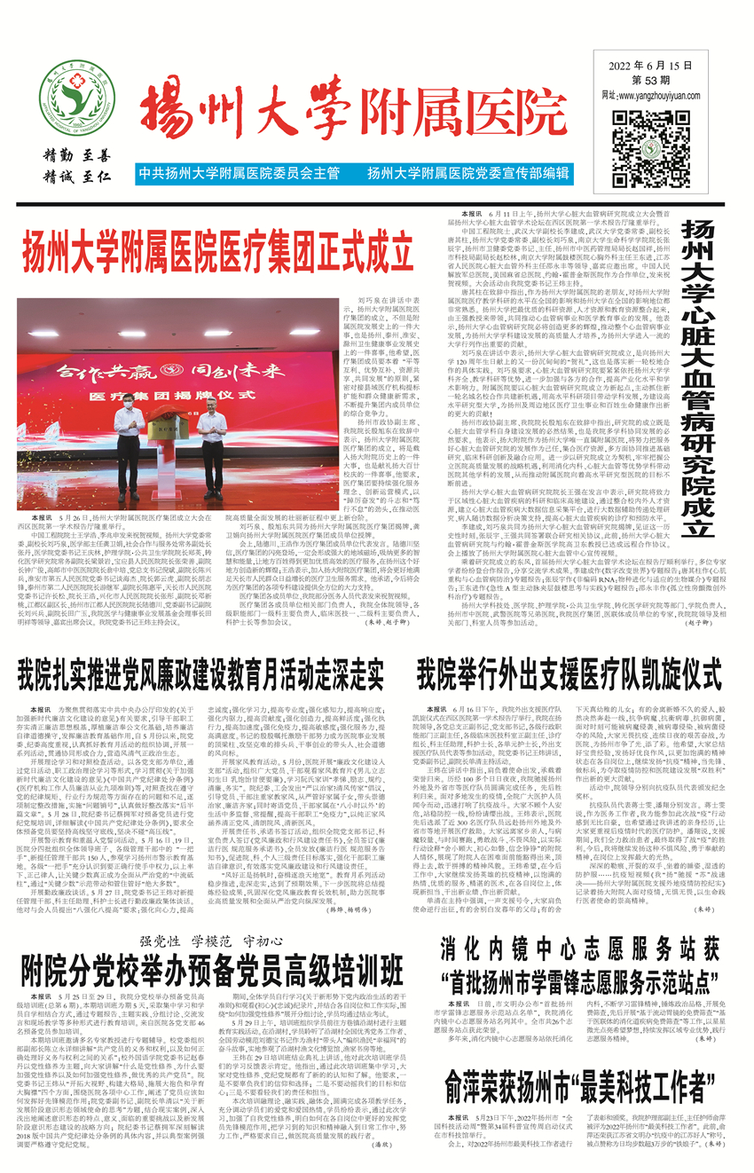 《扬州大学附属医院》第53期(2022年6月15日第1版)