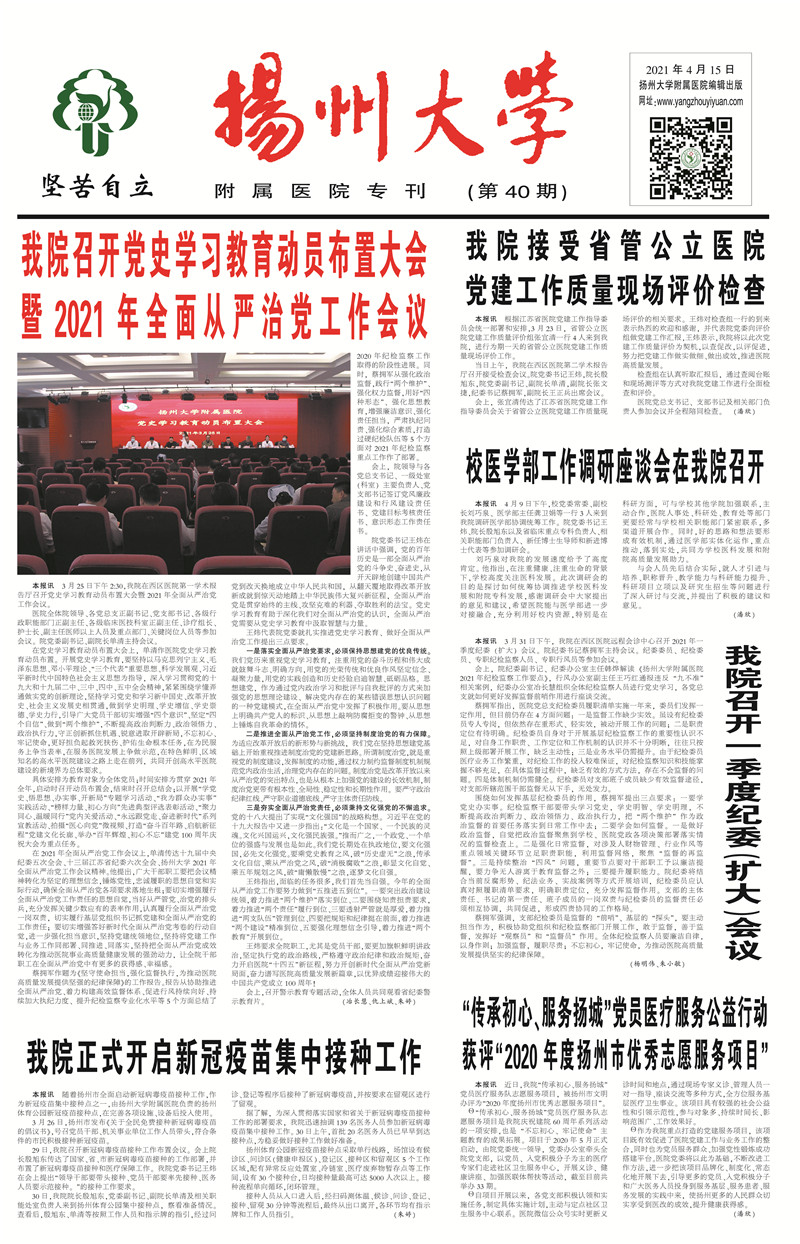 《扬州大学附属医院专刊》第40期(2021年4月15日第1版)