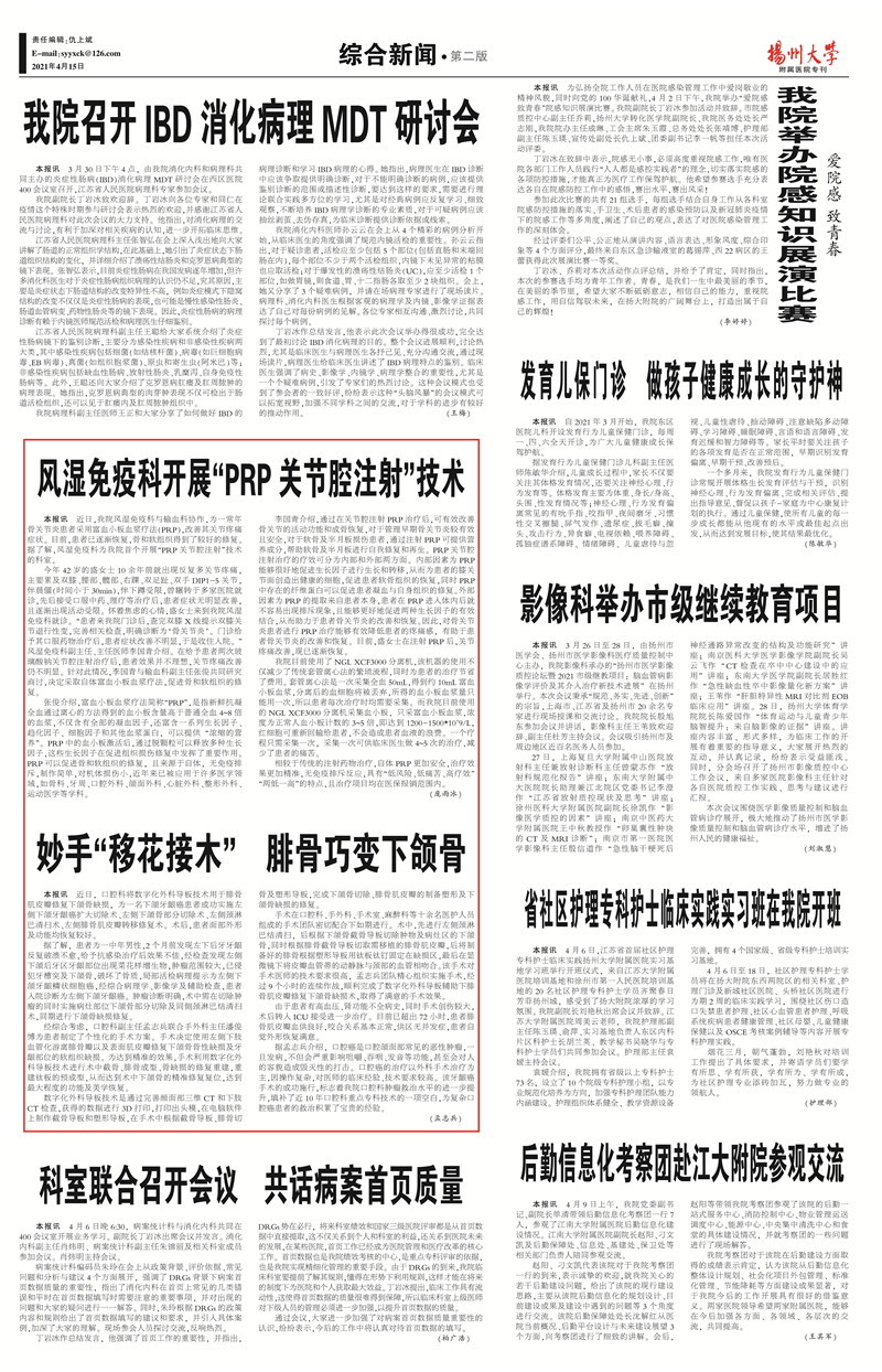 《扬州大学附属医院专刊》第40期(2021年4月15日第2版)