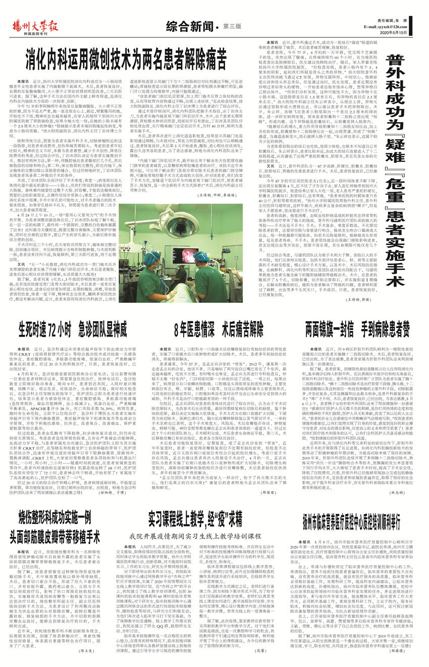 《扬州大学报•附属医院专刊》第29期(总第649期)(2020年5月15日第3版)