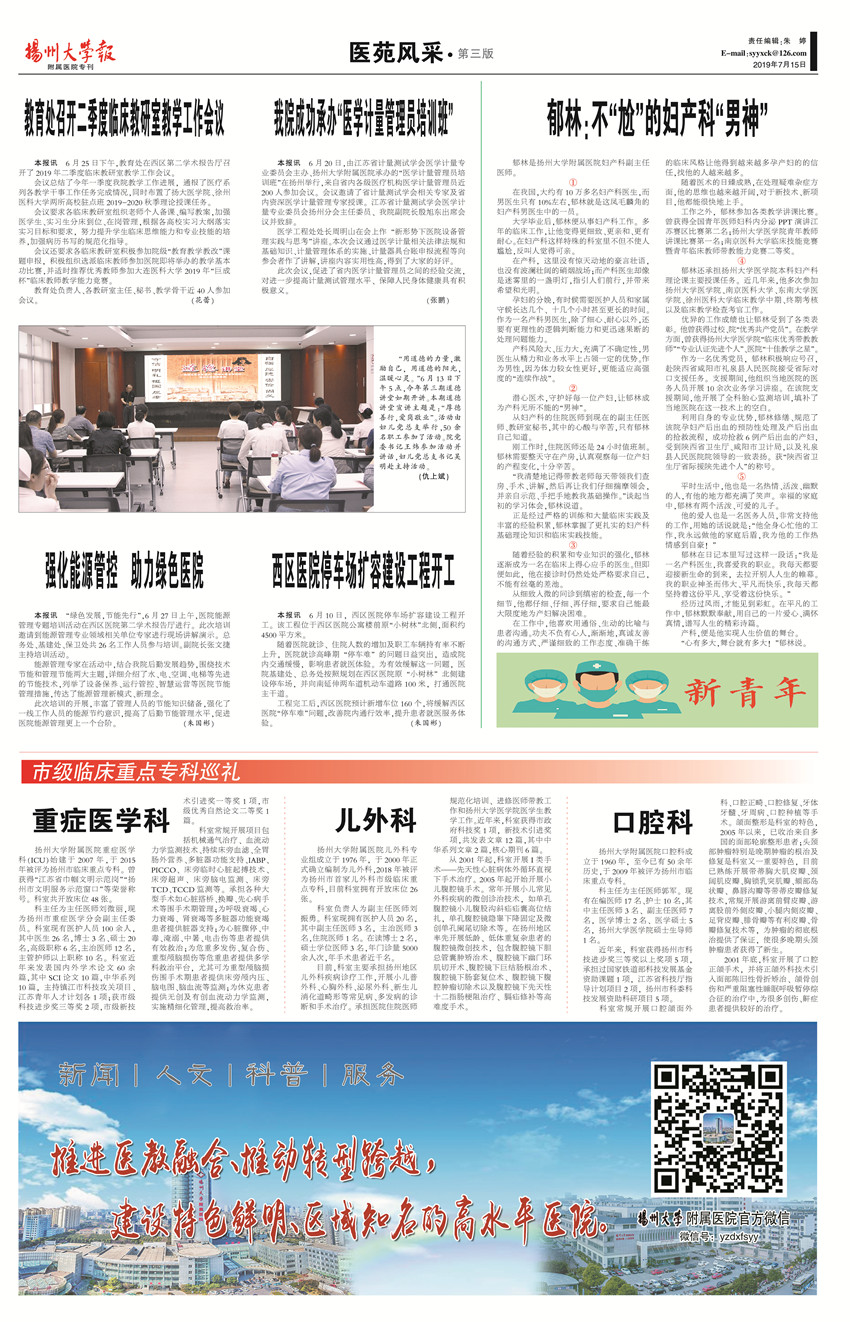 《扬州大学报•附属医院专刊》第19期(总第626期)(2019年7月15日第3版)