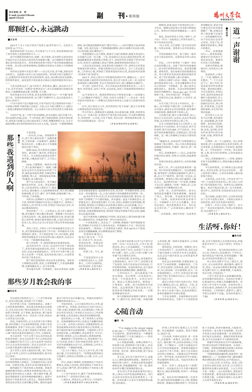 《扬州大学报•附属医院专刊》第19期(总第626期)(2019年7月15日第4版)