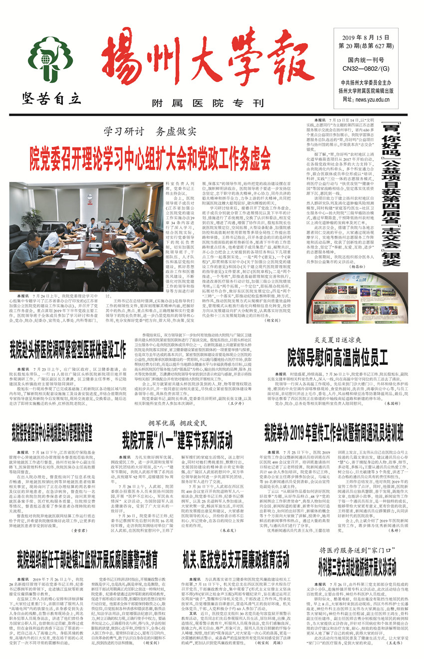 《扬州大学报•附属医院专刊》第20期(总第627期)(2019年8月15日第2版)