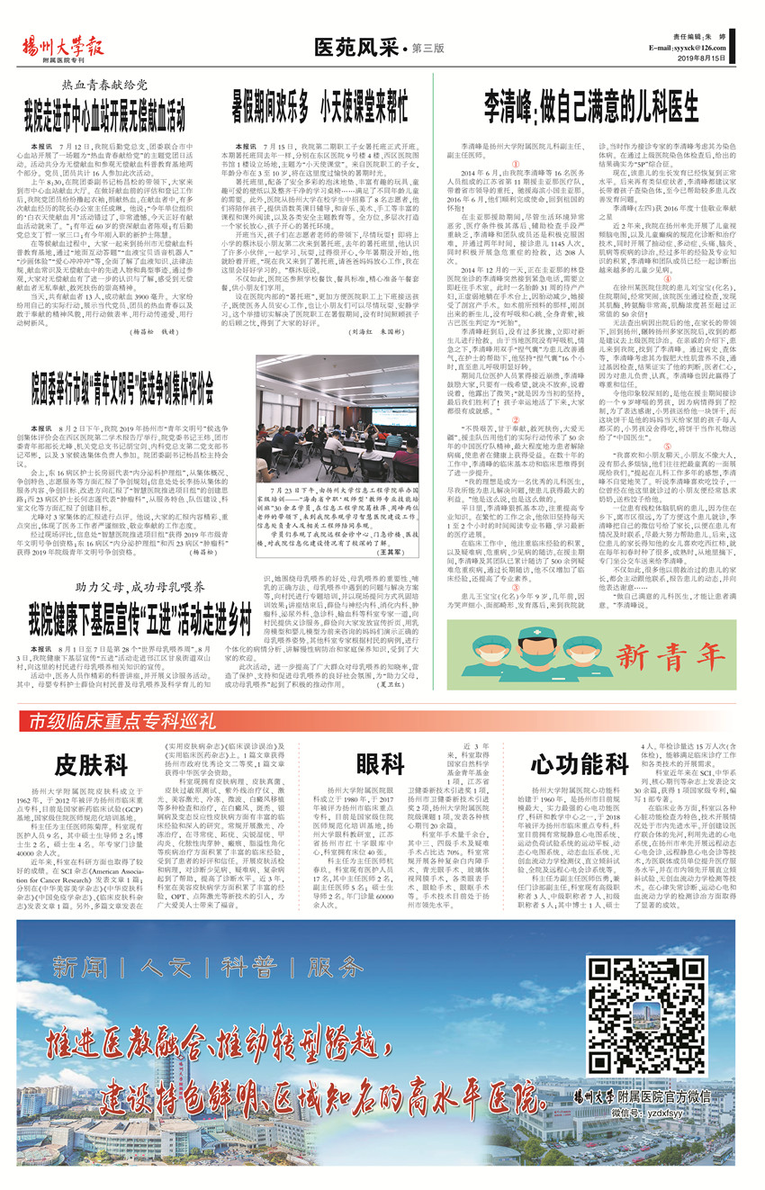 《扬州大学报•附属医院专刊》第20期(总第627期)(2019年8月15日第3版)