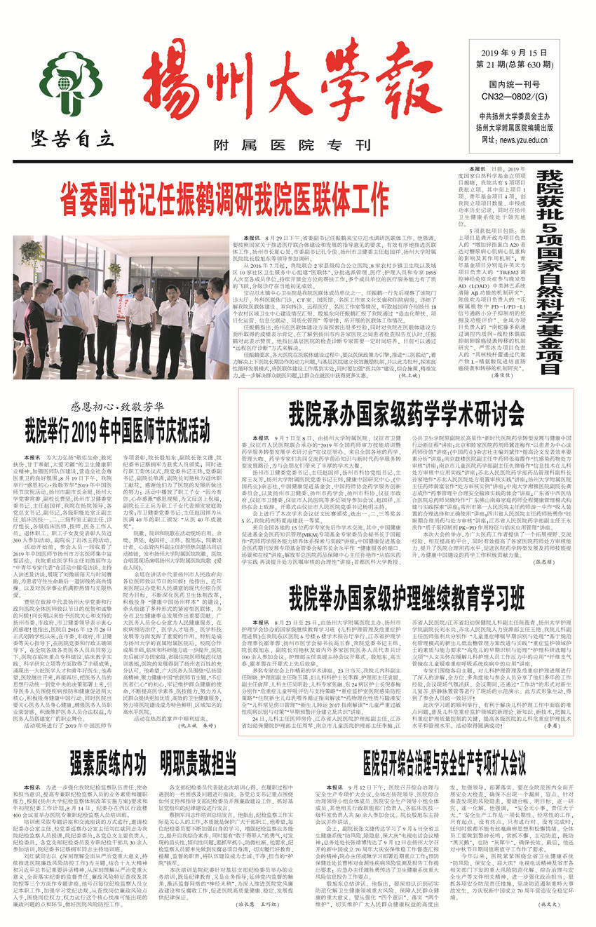 《扬州大学报•附属医院专刊》第21期(总第630期)(2019年9月15日第1版)