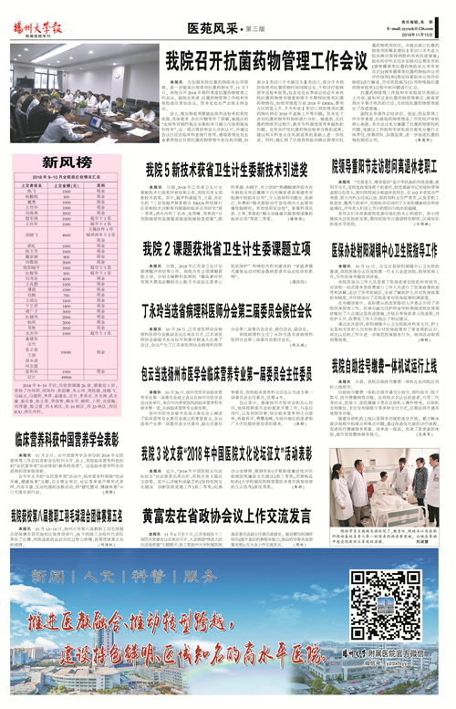 《扬州大学报•附属医院专刊》第12期(总第608期)(2018年12月15 日第2版)