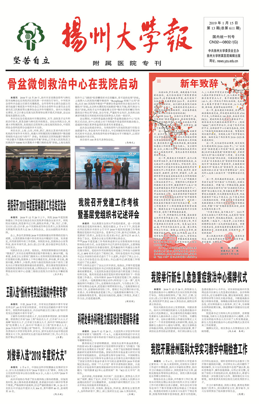 《扬州大学报•附属医院专刊》第13期(总第611期)(2019年1月15 日第1版)