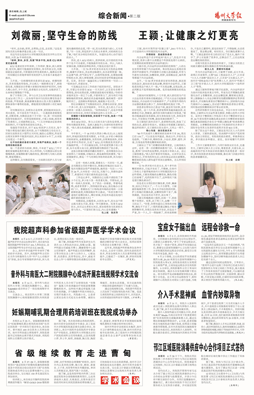 《扬州大学报•附属医院专刊》第9期(总第599期)(2018年9月15日第2版)