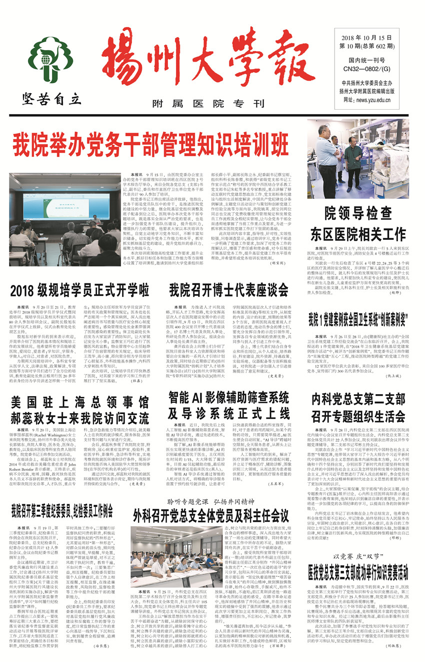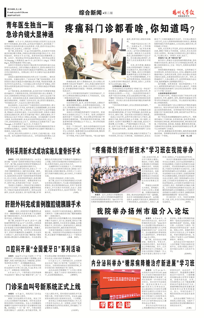 《扬州大学报•附属医院专刊》第10期(总第602期)(2018年10月15日第2版)