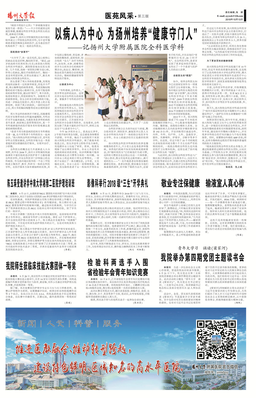 《扬州大学报•附属医院专刊》第10期(总第602期)(2018年10月15日第4版)