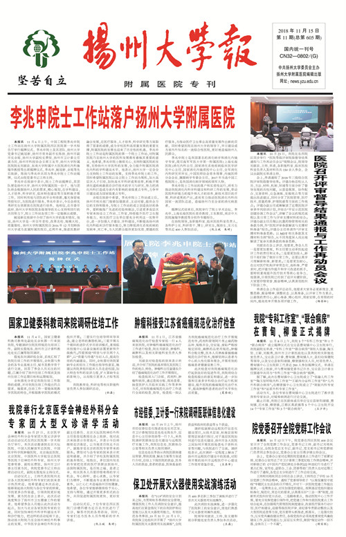 《扬州大学报•附属医院专刊》第11期(总第605期)(2018年11月15日第1版)