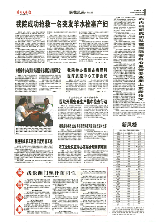 《扬州大学报•附属医院专刊》第7期(总第595期)(2018年7月15日第3版)