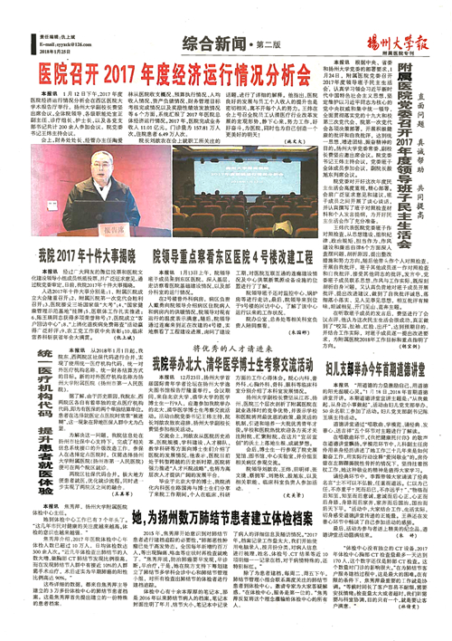 《扬州大学报•附属医院专刊》第1期(总第580期)(2018年1月25日第2版)