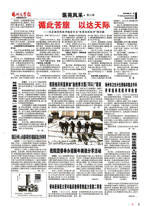 《扬州大学报•附属医院专刊》第1期(总第580期)(2018年1月25日第3版)