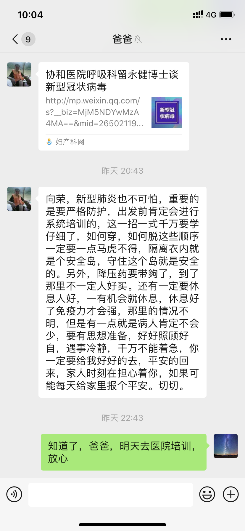 邵向荣是一位参加过抗击非典战役的老兵。“当年只是一位年轻医生,如今到武汉前方是义不容辞。”邵向荣告诉记者,面对此次疫情,他们医院呼吸与重症医学科的所有人员早就处于全员待命状态,在春节时,他就已经给家人打了“预防针”,准备随时接受组织召唤,奔赴抗击疫情的第一线。邵向荣的父亲也是一名医务工作者,今年70岁了还坚持在如皋老家医院一线坐诊,闻知儿子即将出征,还特地给他打来了电话。邵向荣原以为父亲会劝阻,没想到父亲在电话里开头就说:“现在考验你的时候来了,作为一名呼吸科医生,你应该义不容辞奔赴一线。”有了父亲的支持,邵向荣信心更足了。