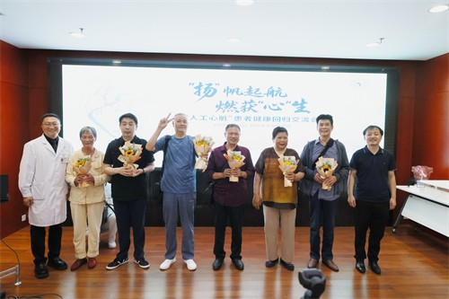 活动中,龚开政向“人工心脏”植入患者们献上鲜花,并祝福大家迎接“心”生活、开创“心”未来。心脏大血管中心副主任王巍主持活动、麻醉科副主任张转发言。大家携手,共同切下象征着“心”生的蛋糕。心脏大血管中心护士长陈冬梅为大家作“左心辅助装置患者术后管理注意事项”讲座。